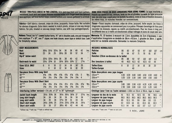 Simplicity 8947 Sewing Pattern Vintage Uncut Etsy